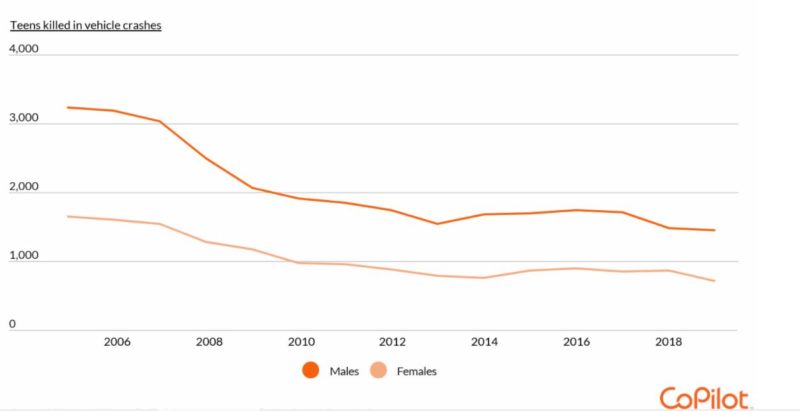 Recent years have shown a marked decline in teen vehicle fatalities as a result of these reforms. In 2005, a total of 4,874 teens were killed in a vehicle crash. By 2019, that figure had fallen by more than half, to 2,165. However, there remains a significant gap between male and female fatalities: in 2019, the number of male fatalities (1,450) was over twice as high as the number of female fatalities (715) for teens aged 15 to 19.